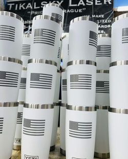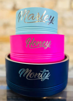 You can customize ALL your favorite drinkware from Yetis, to Owalas, to dog bowls (Honey approved), and even flasks!
